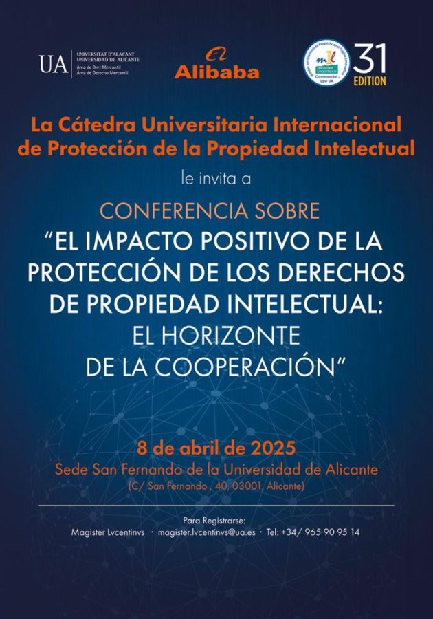 Outstanding success of the international conference: ‘Positive Impact of Intellectual Property Protection: the Horizon of Cooperation’, organised by the International University Chair in Intellectual Property Protection of the University of Alicante. The Chair is a partnership between the University and the private sector, promoted by the Commercial Law Department of the University of Alicante and the Alibaba Group International. More than twenty top international speakers, experts in the different fields of intellectual property, participated in this exceptional event, including: Elisa Rodriguez Ortiz, Director General of the OEPM, Esperanza Gallego and Pilar Montero from the University of Alicante, José Antonio Moreno Campos, Director Global IP Enforcement team ALIBABA GROUP, Mauricio Escanilla, Claudio Bergonzi from Alibaba Group, Ivan L. Sempere from PADIMA, Marco Musumeci of UNICRI – United Nations Interregional Crime and Justice Research Institute, Magdalena Jakubicz of Cisco, Sofian Baghriche of the International Olympic Committee – IOC, Marta Castillo Gonzalez of the European Anti-Fraud Office (OLAF), José Luis Gómez of the National Police, Raquel Herrero of the Civil Guard, Bérengère Dreno and Nicole Semjevski of EUIPO, and Joao Amaral of INPI.