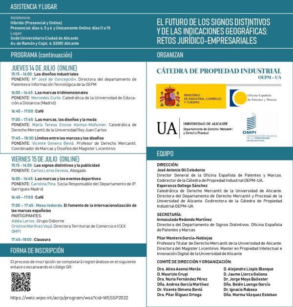 The World Intellectual Property Organization – WIPO Academy, together with the OEPM and in collaboration with the UA – Universidad de Alicante / Universitat d’Alacant, is organizing a summer course