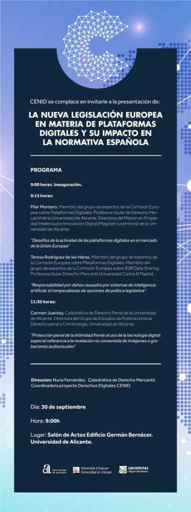 PROFESSOR DR. NURIA FERNANDEZ DIRECTS THE CENID SEMINAR: “THE NEW EUROPEAN LEGISLATION ON DIGITAL PLATFORMS AND ITS IMPACT ON THE SPANISH REGULATION”.