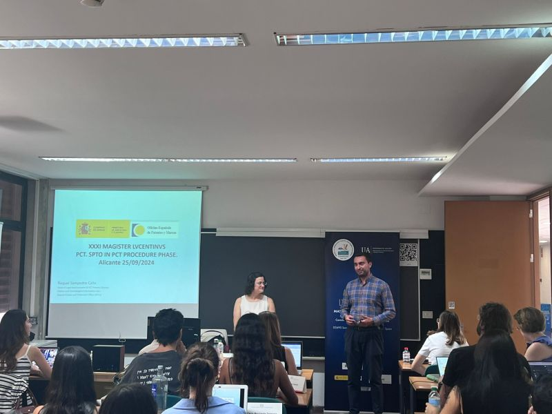 From Magister Lvcentinvs, Master in Intellectual Property and Digital Innovation, we would like to thank Ms. Raquel Sampedro, Head of the Legal Area, European Patent and PCT of the Spanish Patent and Trademark Office, for the magnificent session given, whose title is PCT, SPTO IN PCT PROCEDURE PHASE, in the Patents, Technology Transfer and Digital Innovation module.