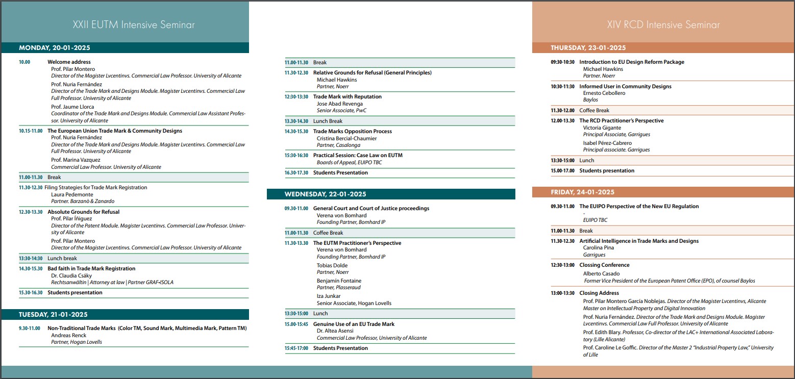 From the Magister Lvcentinvs and the Department of Commercial Law of the UA – Universidad de Alicante / Universitat d’Alacant we are pleased to announce the celebration of the XXIII INTENSIVE SEMINAR ON TRADEMARKS IN THE EUROPEAN UNION; and XV INTENSIVE SEMINAR ON DESIGNS IN THE EUROPEAN UNION.